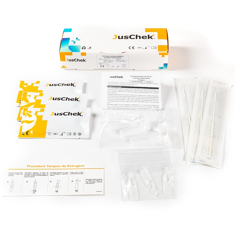Test rapid JusChek ANTIGEN Covid-19 ( Exsudat Nazal ) -casetă 3 BUCATI /TVA 0% conform ART 14 din OG 226/2020/ U.S.A.
